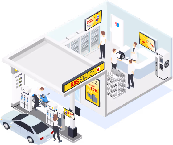 Digital signage engages customers at the point of sale (POS) kiosks and even at the pump, potentially converting 'gas-only' customers into additional in-store revenue sources.