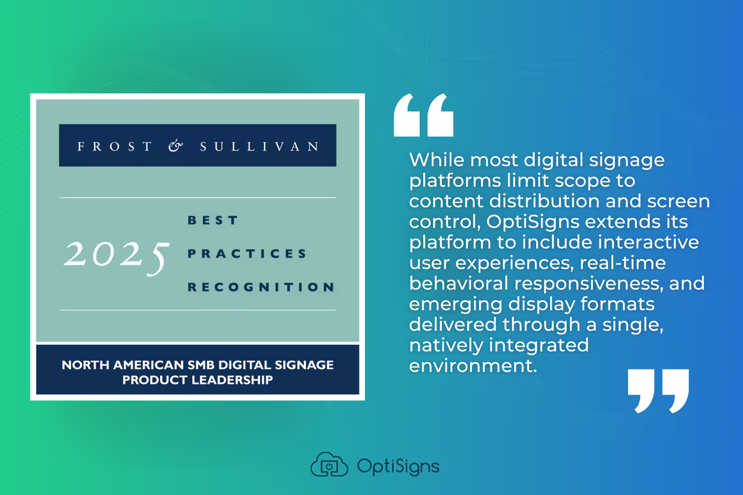 For more on the 2025 Frost & Sullivan Product Leadership Recognition and OptiSigns' best practices in the digital signage industry, read the full press release.
